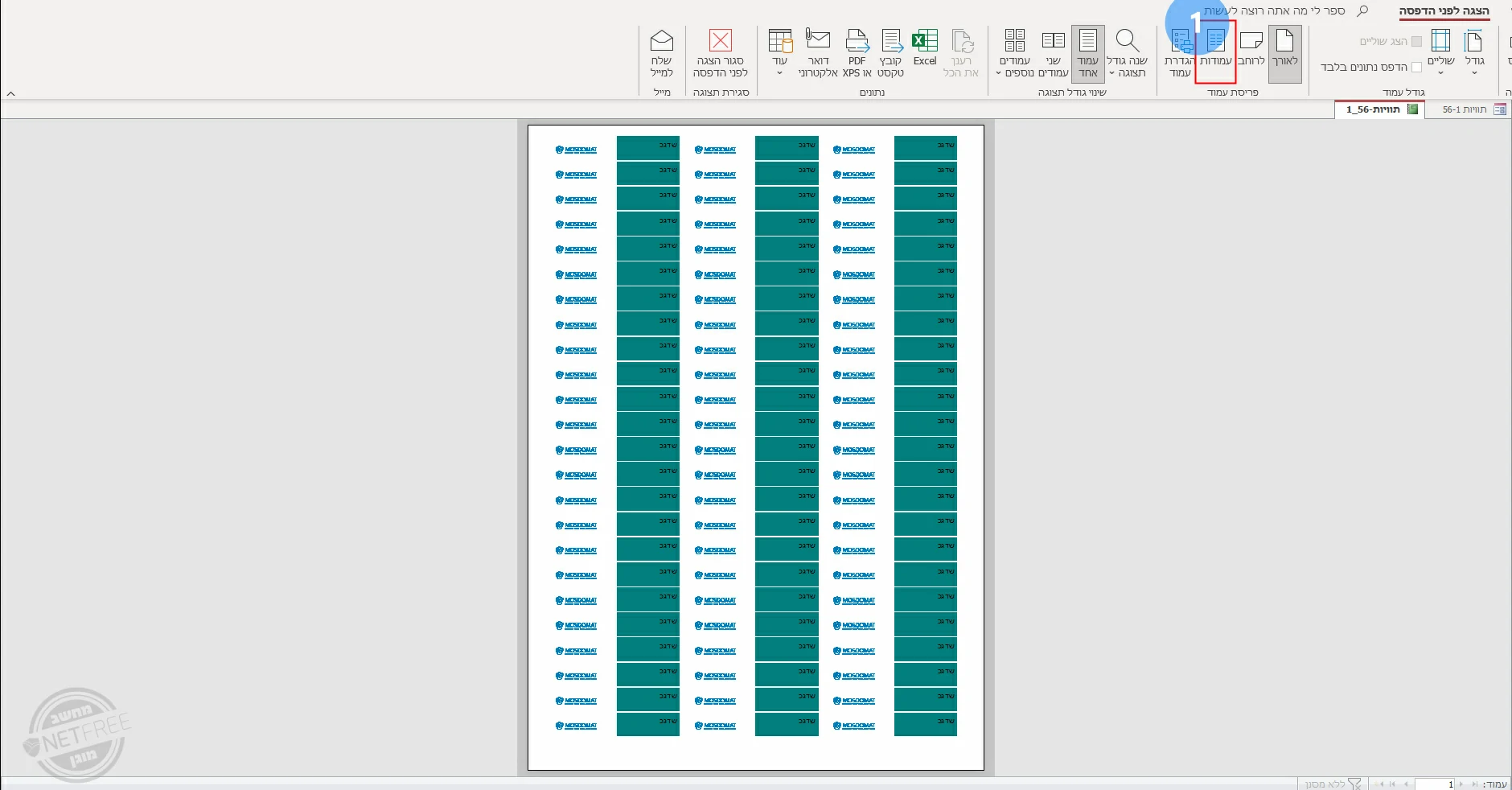 לחיצה על הכפתור עמודות ↓↓↓