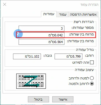 אח"כ הגדרת המרווח בין השורות,